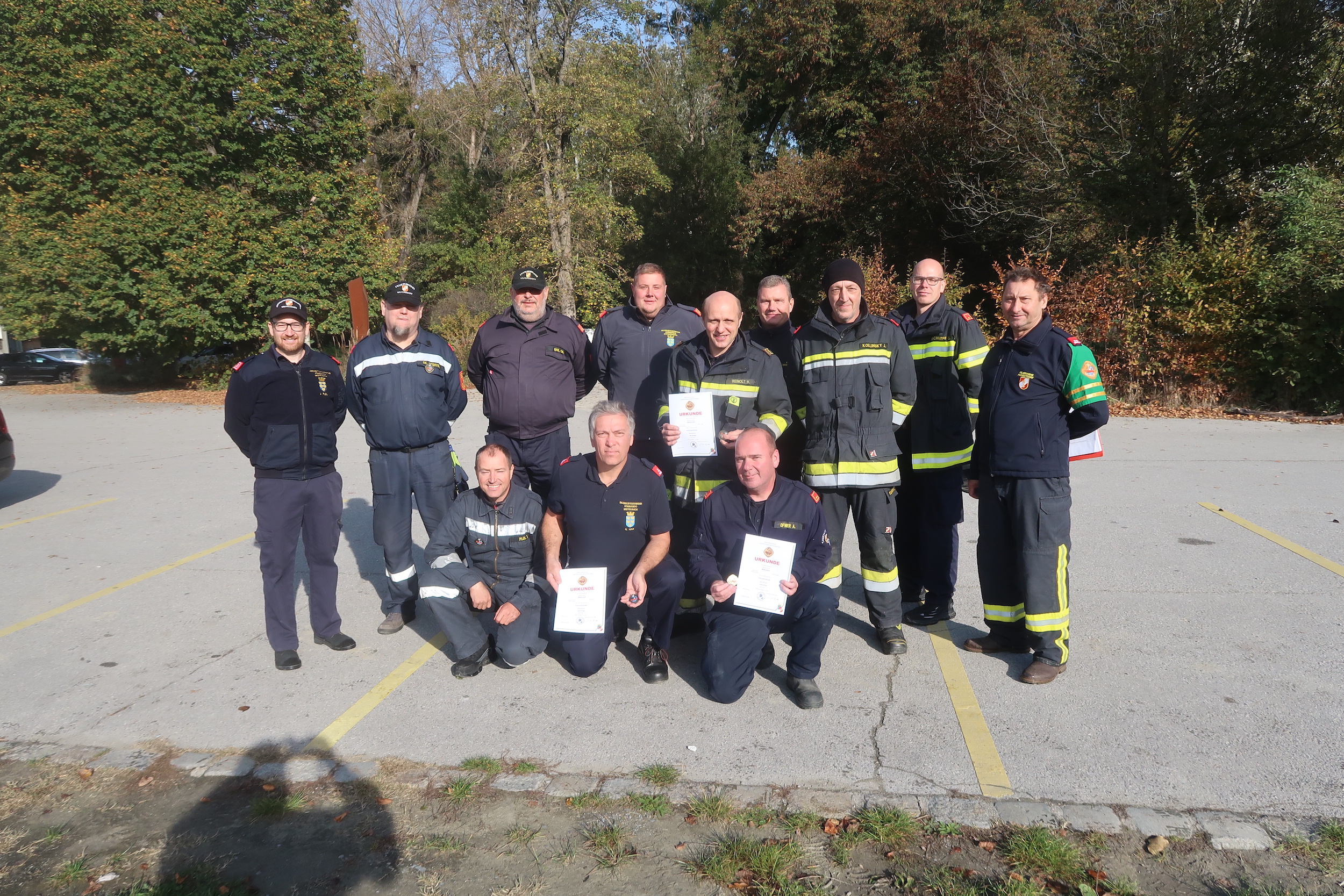 Unter den strengen Augen von Hauptbewerter Alfred Michna von der Freiwilligen Feuerwehr Probstdorf zeigten die Teilnehmer ihr Können. Nach erfolgreich absolvierter Prüfung durfte Bezirkssachbearbeiter Jürgen Gleißner den Kameraden herzlich zur bestandenen Ausbildungsprüfung gratulieren und die Urkunden sowie Abzeichen überreichen.