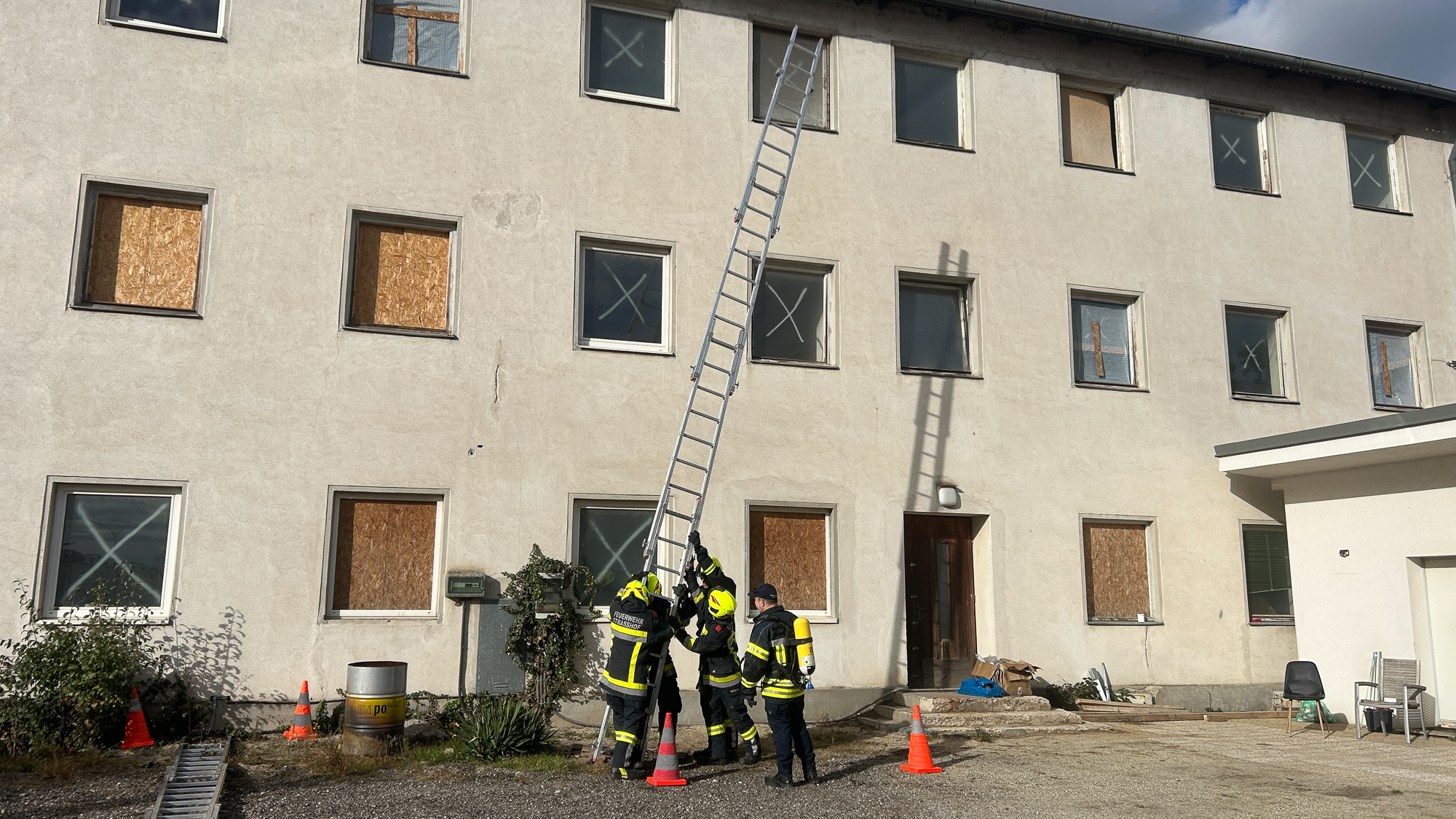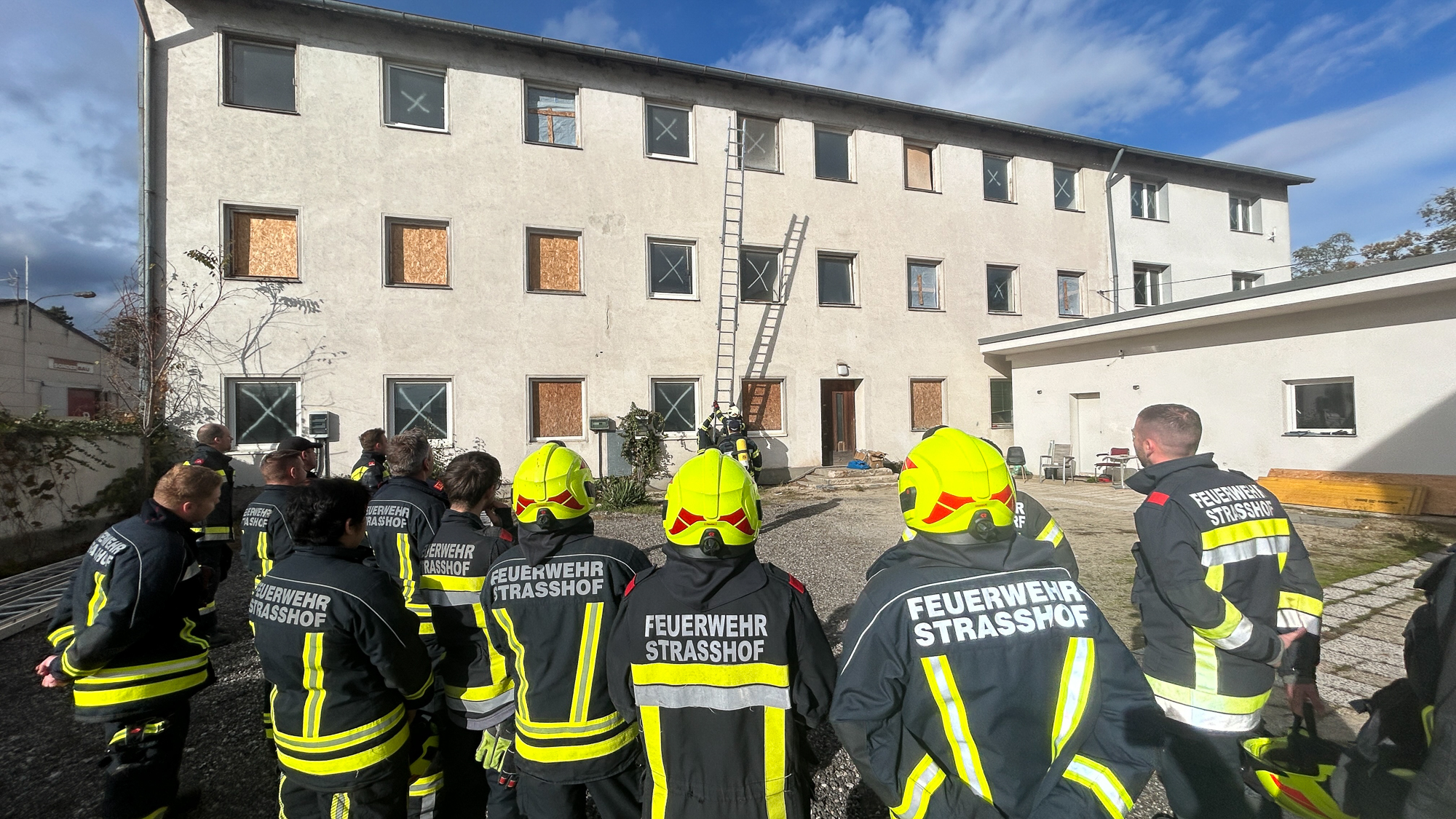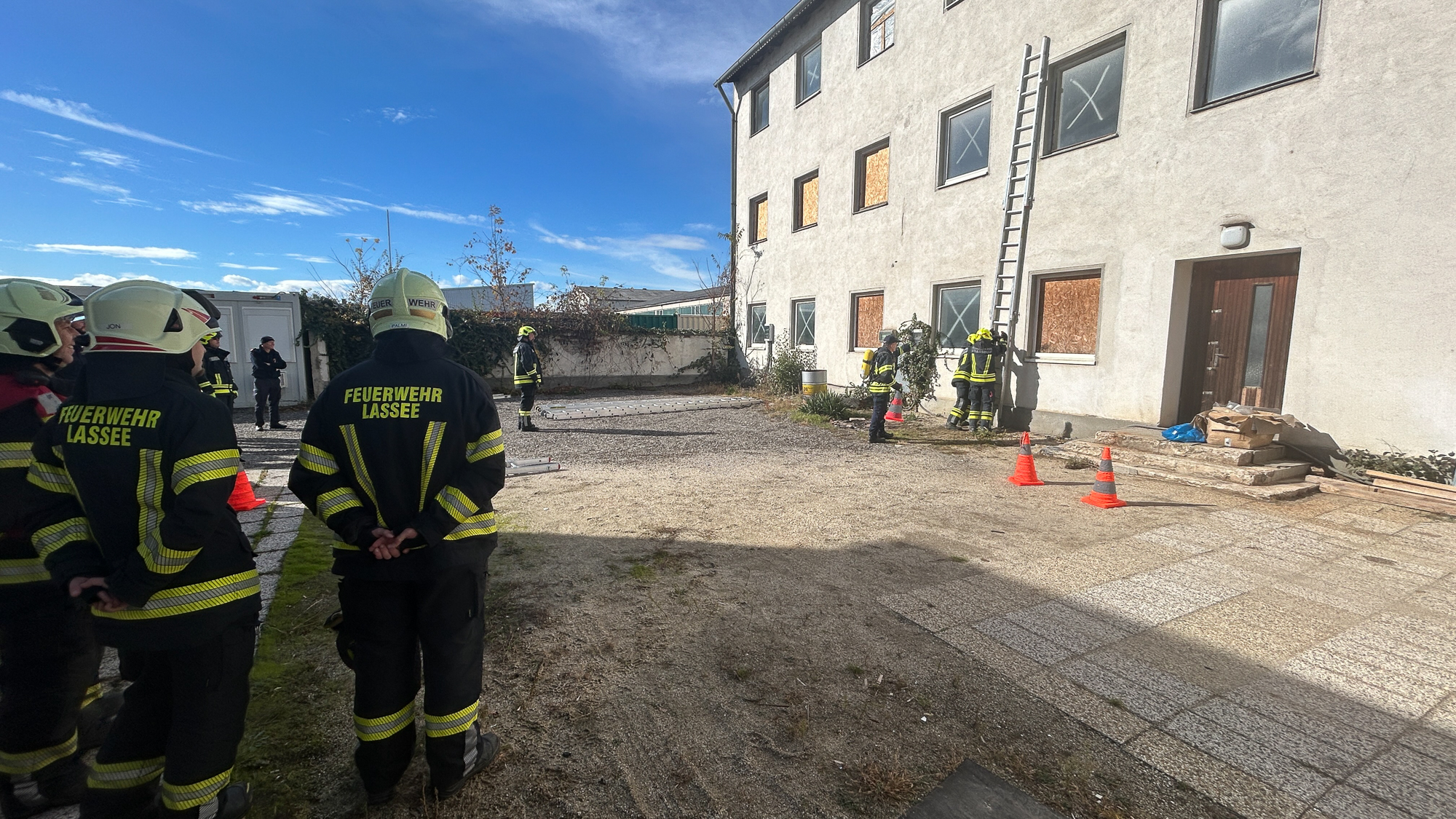 Ein Schwerpunkt lag dabei auf einem Brandeinsatz in einem mehrstöckigen Gebäude, bei dem eine Personensuche und anschließende Rettung über Leitern durchgeführt wurde.