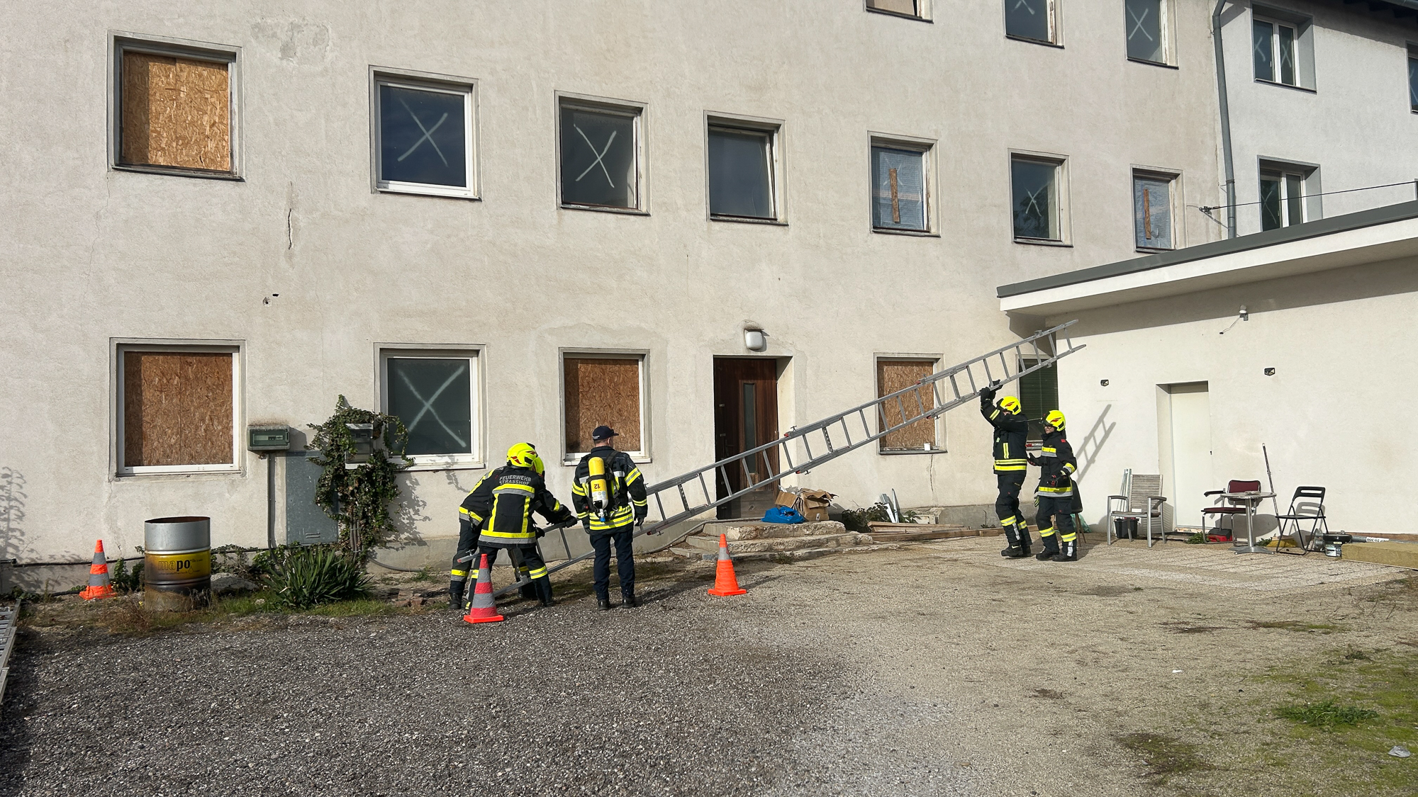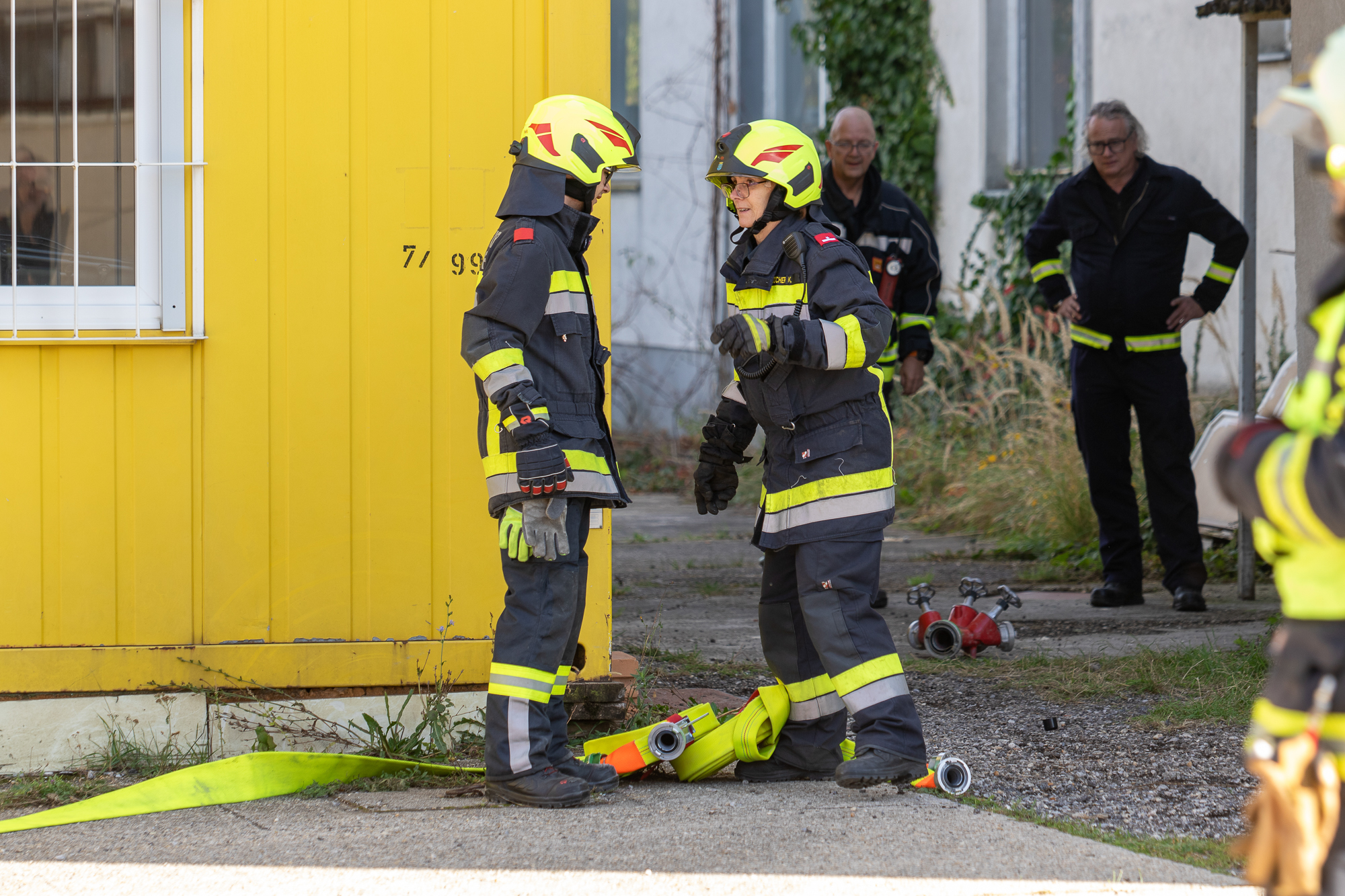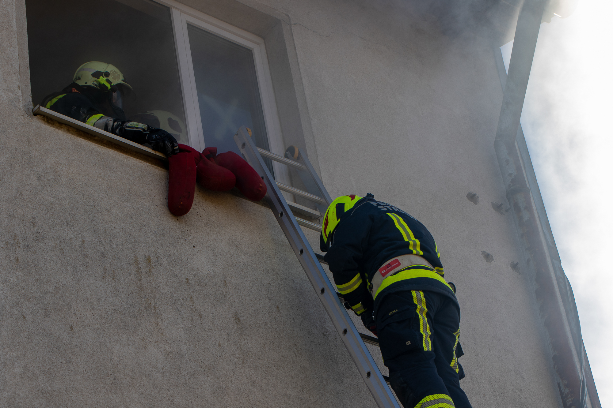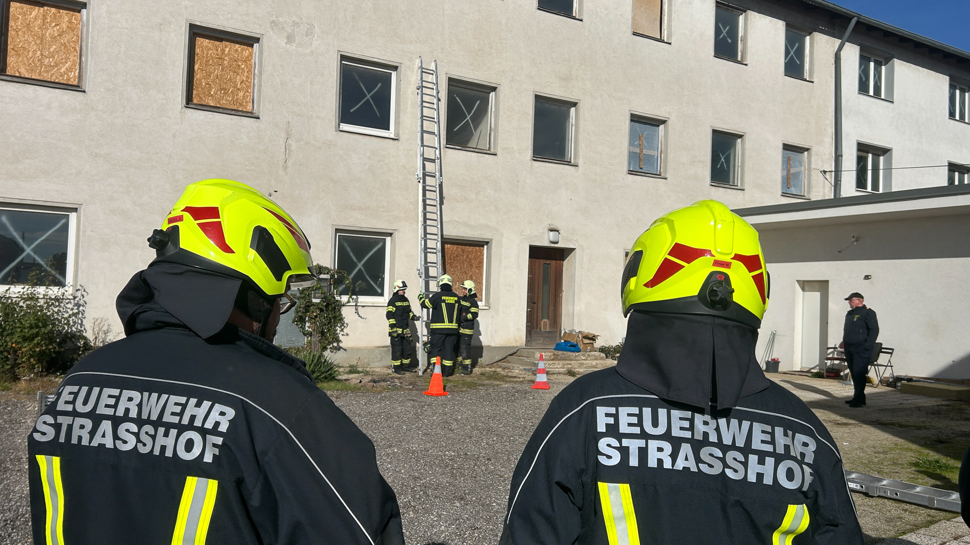 Ein Schwerpunkt lag dabei auf einem Brandeinsatz in einem mehrstöckigen Gebäude, bei dem eine Personensuche und anschließende Rettung über Leitern durchgeführt wurde.